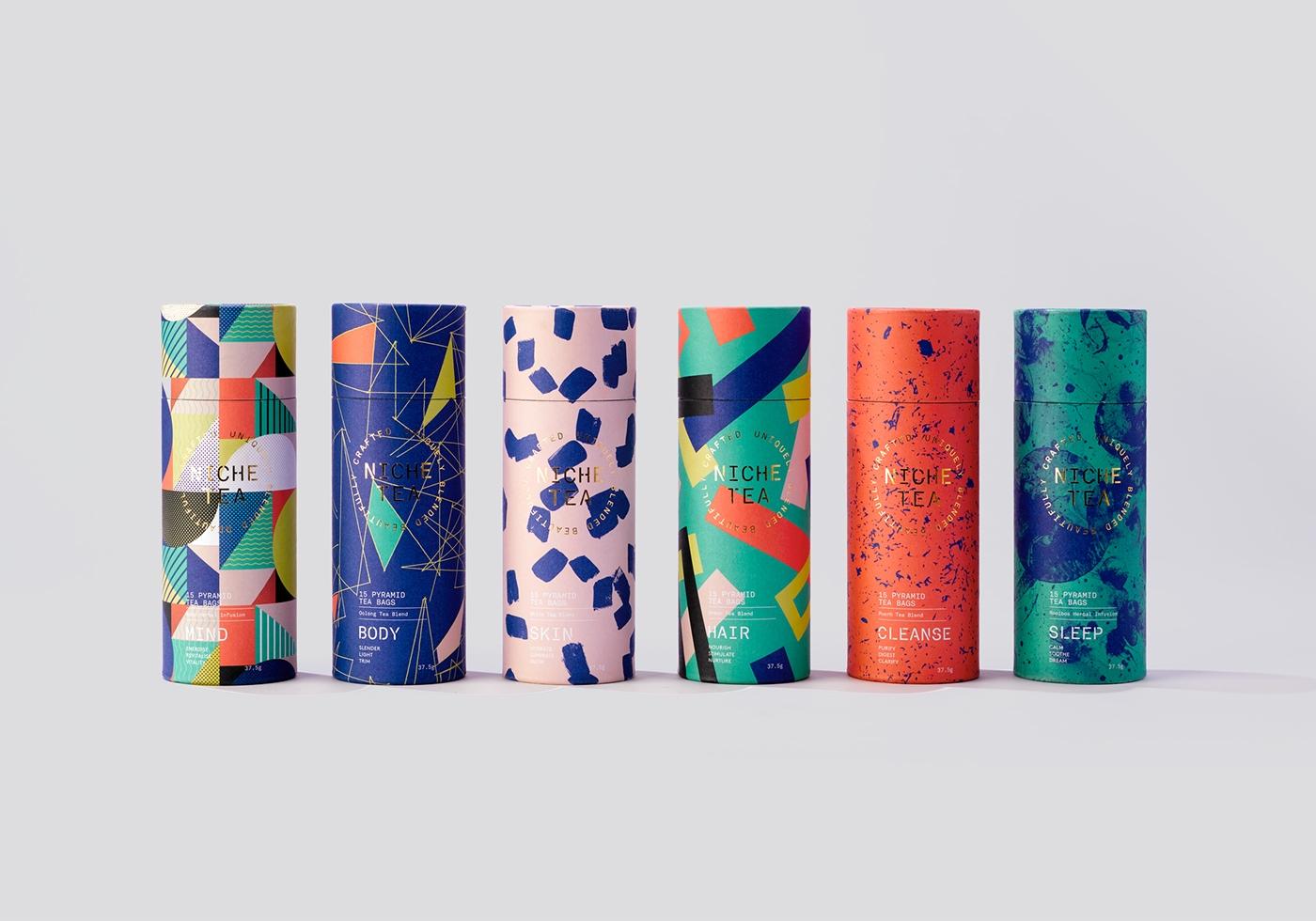 這個(gè)品牌的茶共有六個(gè)類型,不同于其他茶葉素雅的包裝,倫敦草本茶在包裝設(shè)計(jì)上分別采用對(duì)比色和同類色等鮮明的色彩,目的是營造出頭發(fā)、皮膚、睡眠、消化等癥狀改善后的青春活力的氣氛。整體的包裝設(shè)計(jì)充分利用了點(diǎn)線面三大元素,增添了產(chǎn)品的現(xiàn)代感。除此之外,產(chǎn)品包裝上還采用了茶的碎渣以及顯微鏡下茶的營養(yǎng)元素的圖案進(jìn)行設(shè)計(jì),迎合了天然健康的品牌文化。