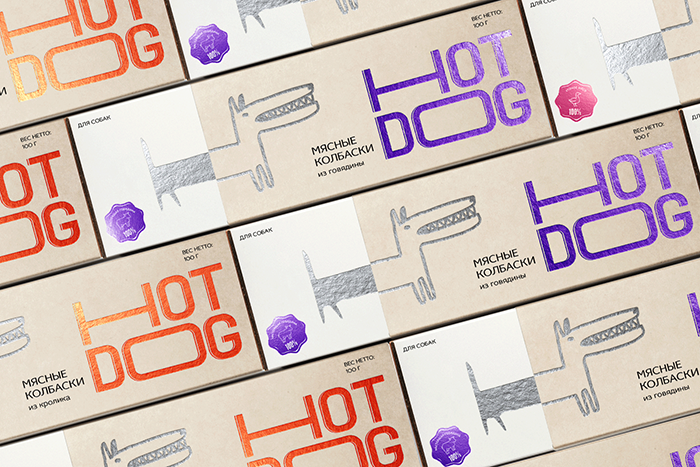這是David Hovhannisyan設計的寵物狗香腸包裝,品牌文字形象生動,很好的體現了香腸被拉出來的不斷變長的感受,同時兼具識別性,充滿趣味性。