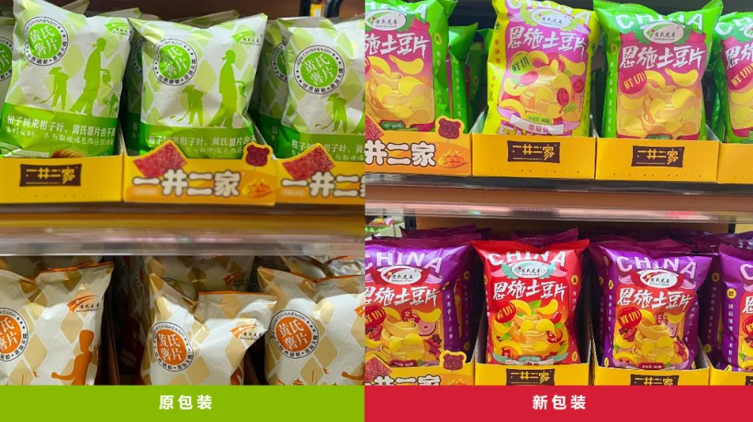 黃氏薯片的核心賣點在于鮮切、產地恩施,產品包裝上沒有去強調這種稀缺性。沒有形成”品牌高端化認知”沒有賣點,同質化競爭激烈,所有薯片都是一副面孔,如果不看品牌,買誰家都一樣。在新產品包裝規劃中,我們核心做好3件事—建立產品認知,形成品牌記憶,穩固“稀缺的賣點”形成資產。